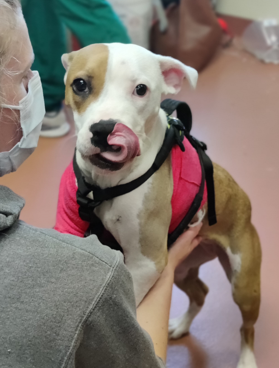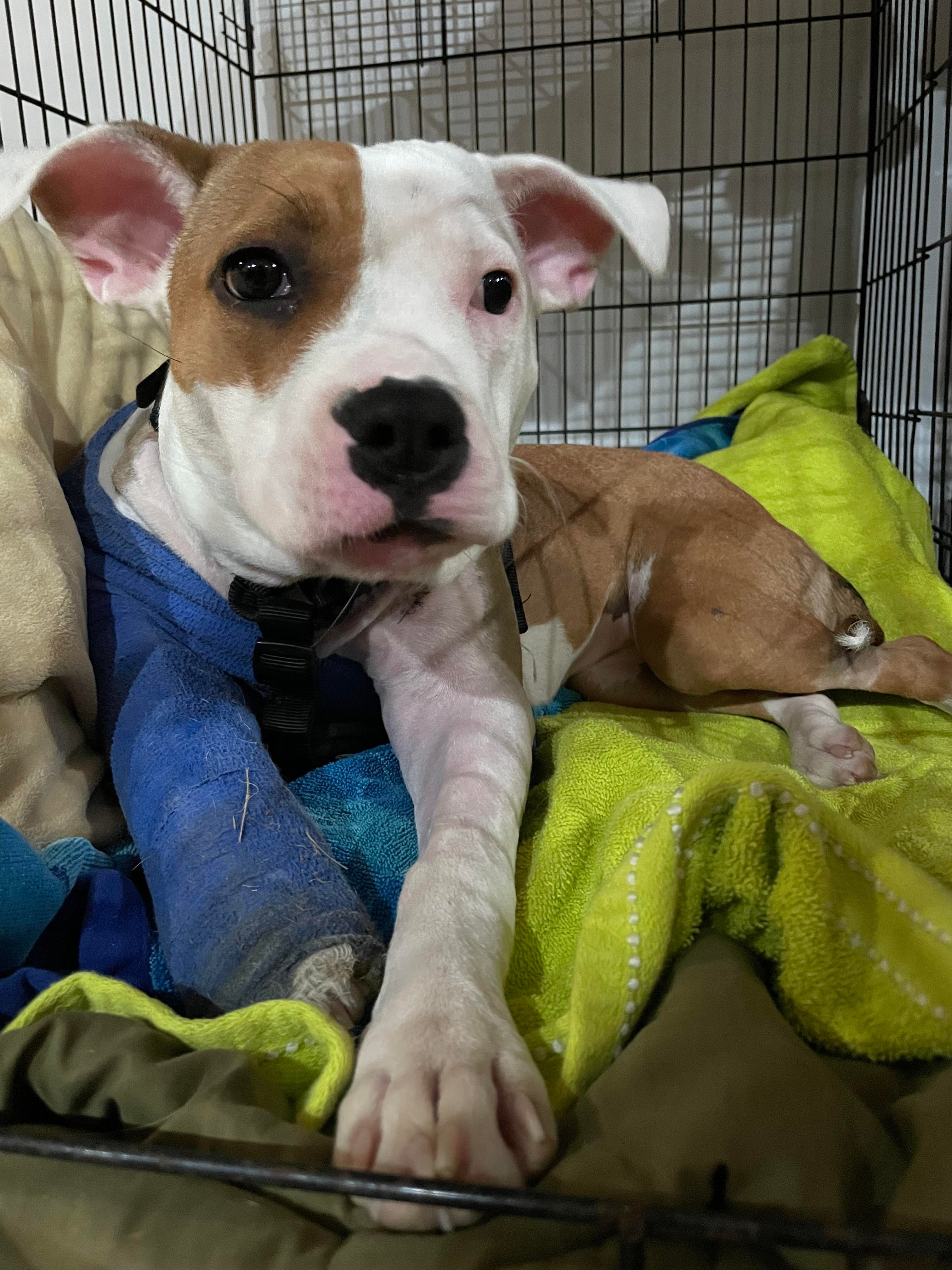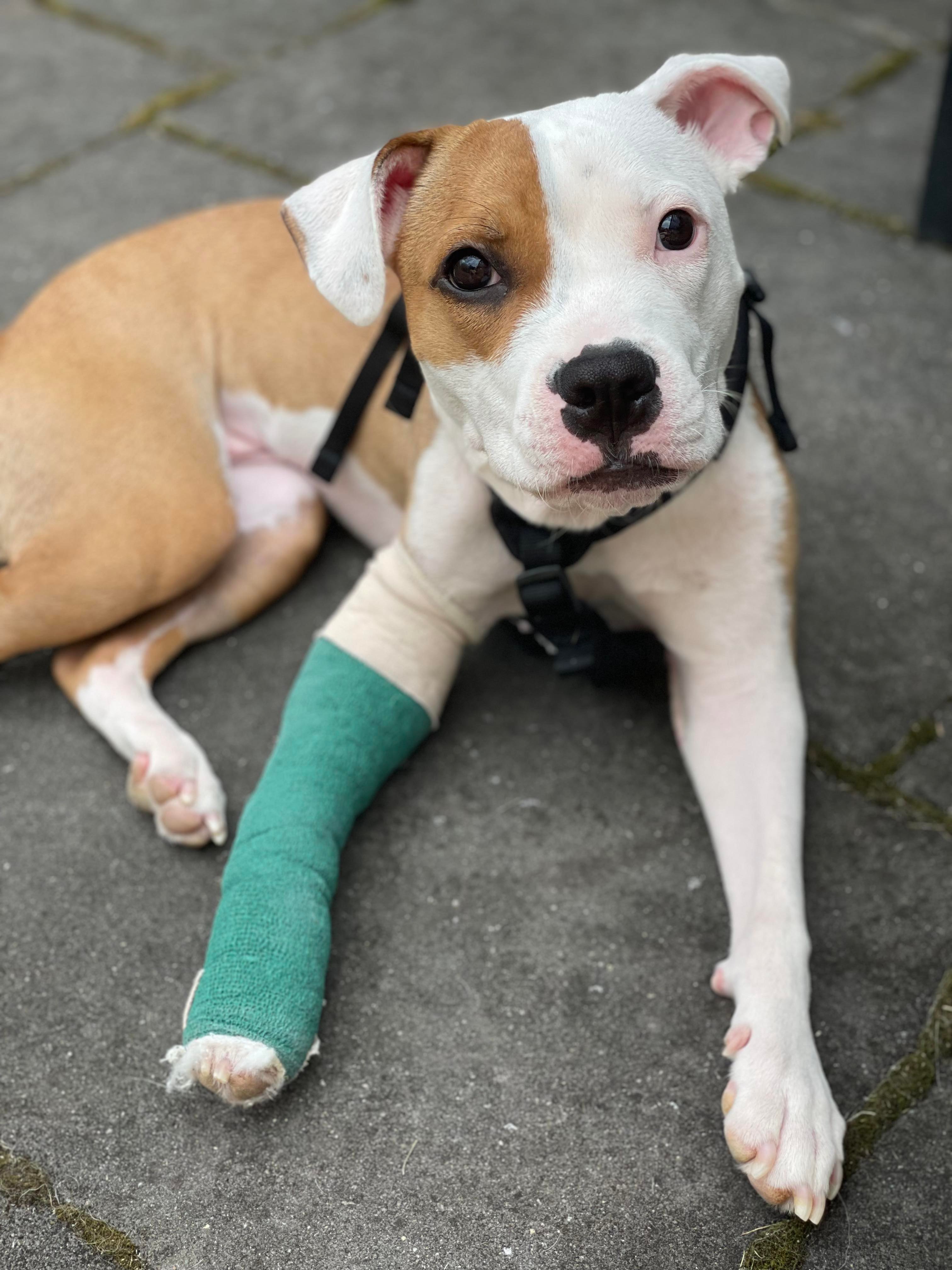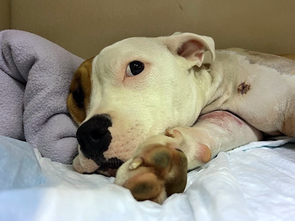Florence's previous owner claims that she fell while running in the backyard but we don't believe this fabricated story. This poor pup is going to have a long and extensive road to recovery and her estimated vet bill is around $15,000.
