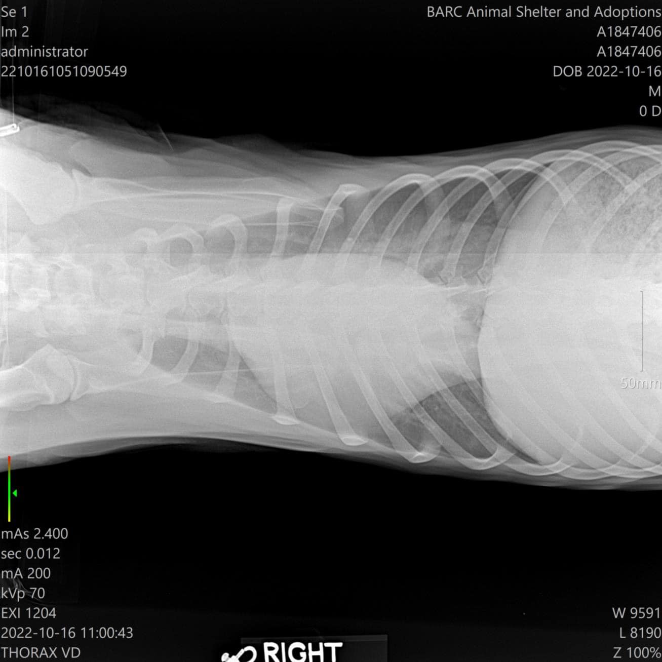 Sadly, X-rays revealed that Jerry has an enlarged heart due to untreated heartworm disease. Doctors said that his prognosis is poor and treatment is limited. He's currently staying overnight at the veterinarian for assessment and we will have more information tomorrow.